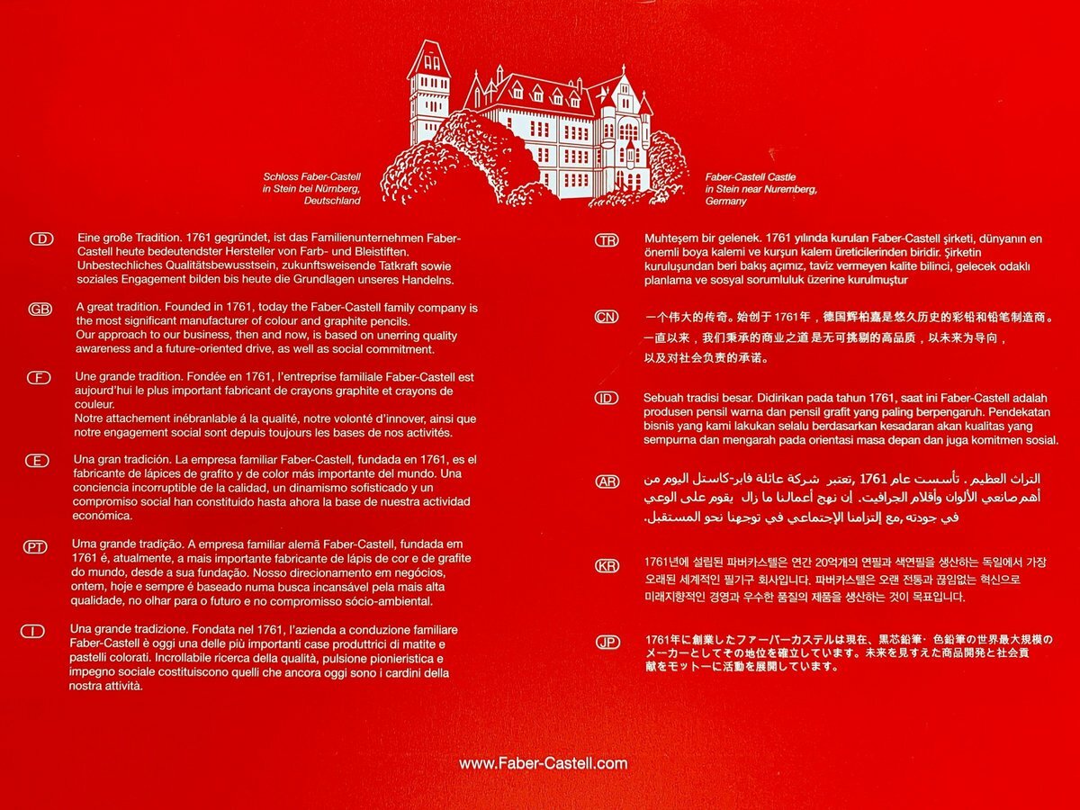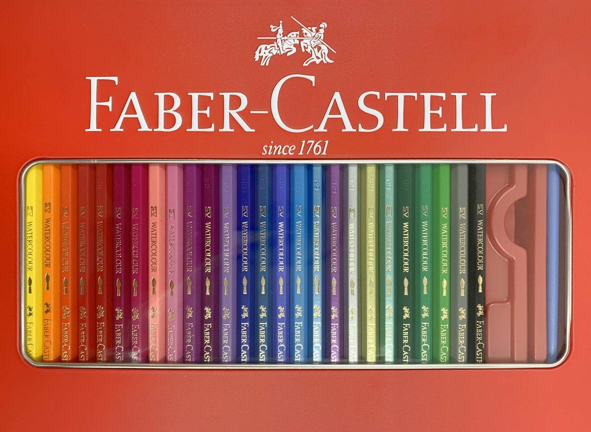 金屬盒中有60種鮮豔顏色、水彩筆一枝、2把握式石墨鉛筆、擦膠和鉛筆刨。