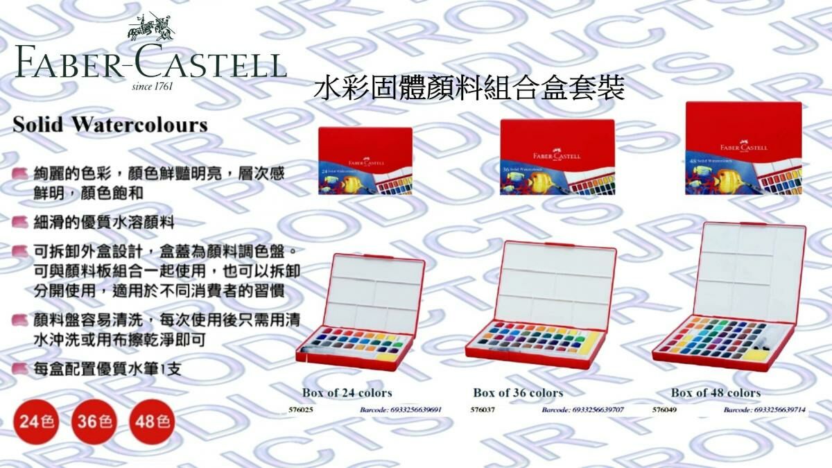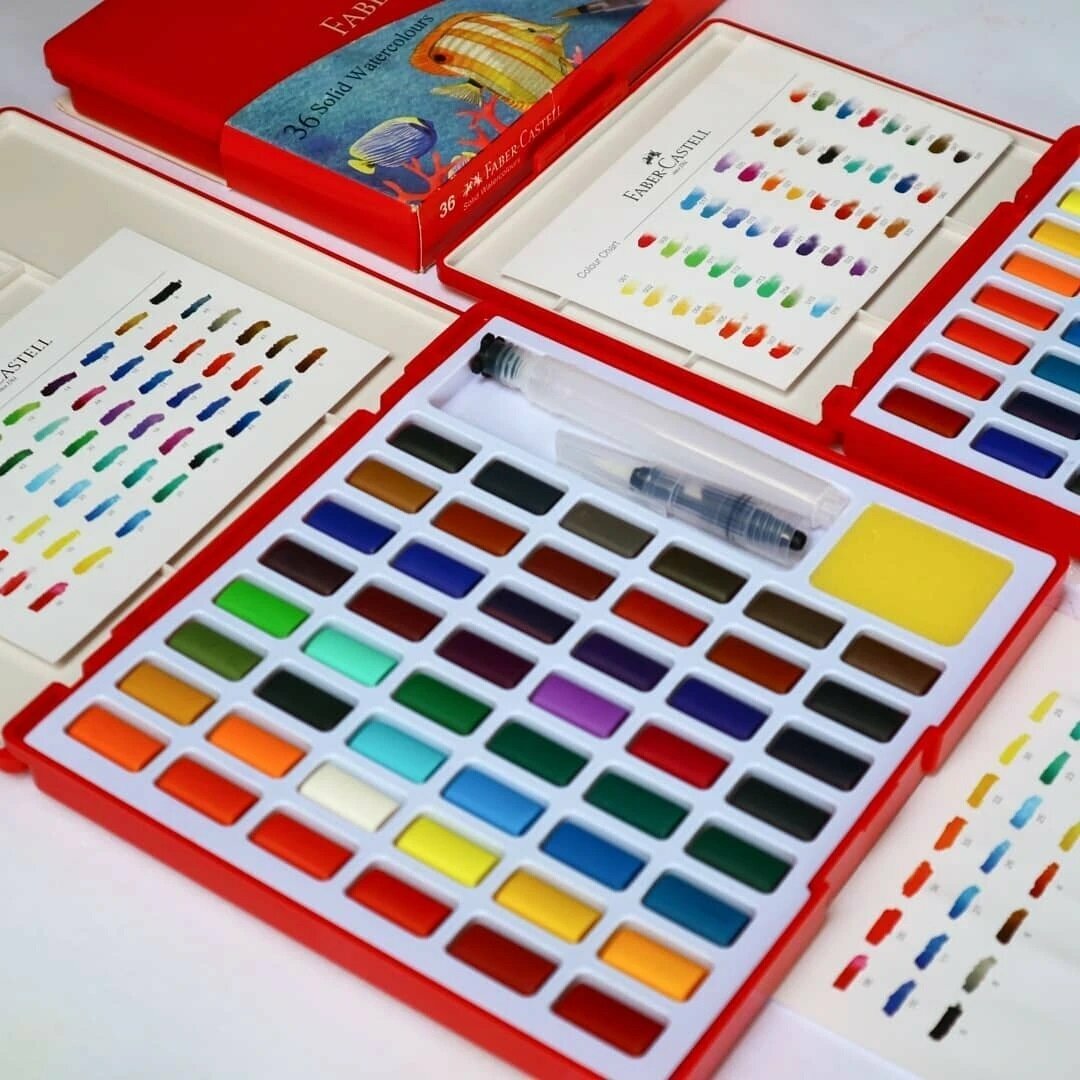 Faber-Castell將為初學者和業餘藝術家提供三套鍋具水彩畫,附畫筆掃和可拆卸的混合調色盤。 所有常規的水彩技術都可以顯現高質著色的水彩畫。 所提供的水筆可以產生多種奇妙的效果,是戶外或旅行中繪畫的理想伴侶。 鮮豔明亮的色彩(包括金屬色和霓虹色)給用家留下了深刻的印象,為他們提供了支援,並為他們的創造力帶來了喜悅和表達能力。