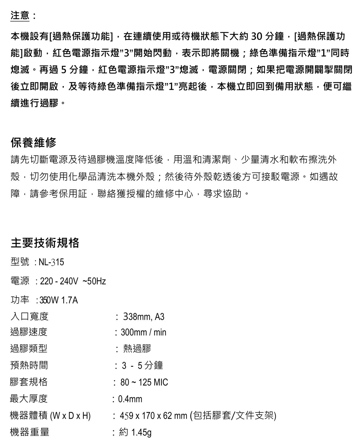 NL-315 電子控溫A3 過膠機
