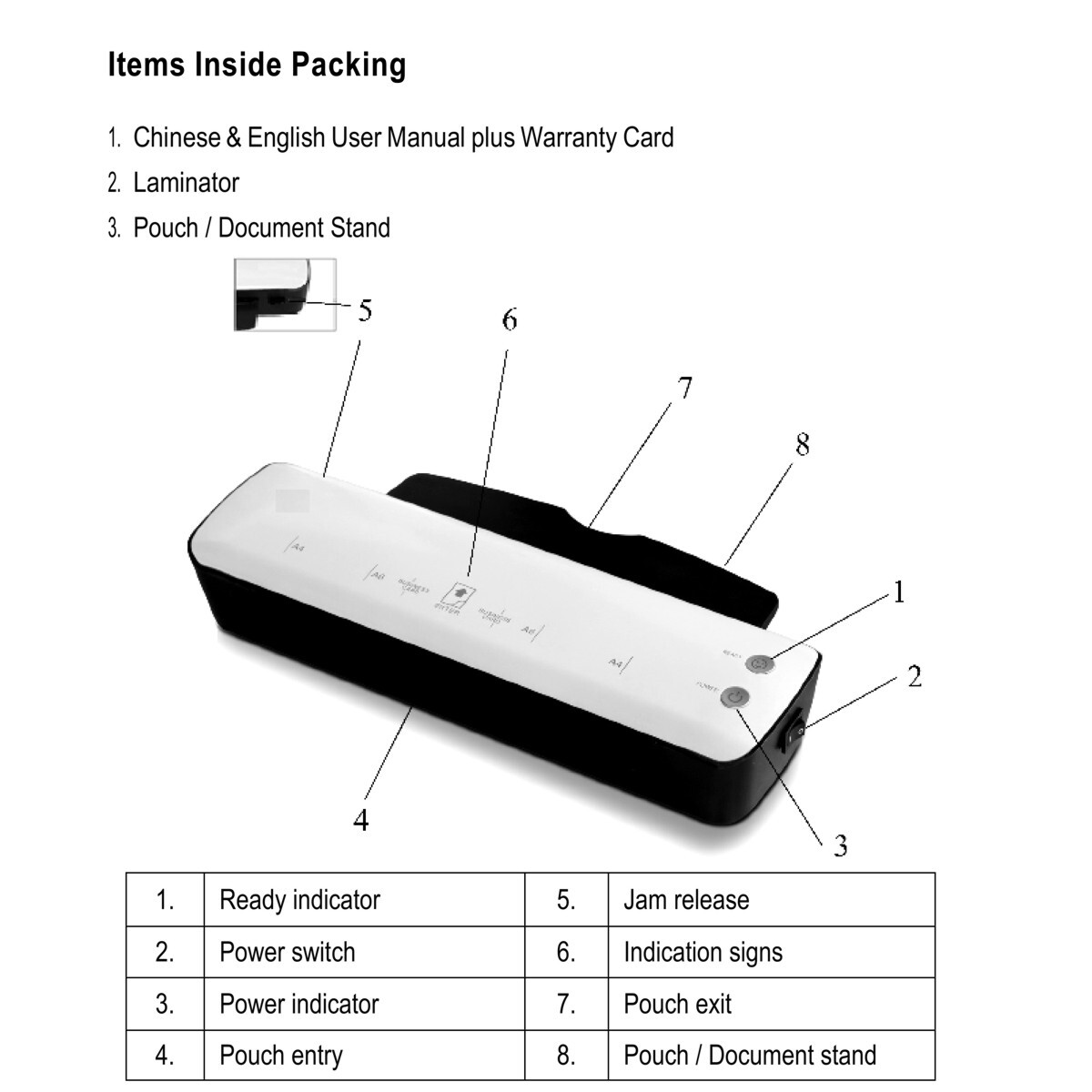 鬆開鍵 - 按鍵後機內部件會自動鬆開 , 輕易取出卡住的膠套