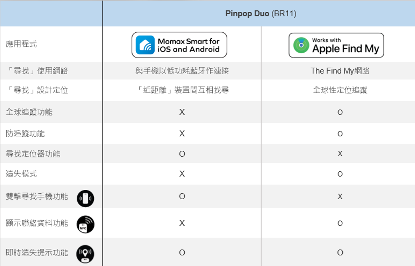 - 雙模尋找 | 支持 Apple Find My 及Momax Smart智能應用程式