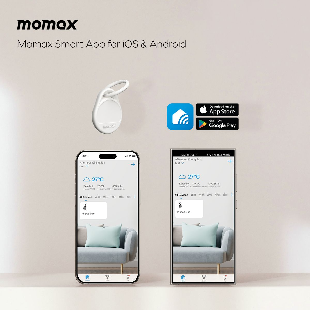 Momax Pinpop Duo 全球定位器 旅行追蹤器 #iOS及Android設備可用 (白色) BR11W《香港行貨》《2年保養》