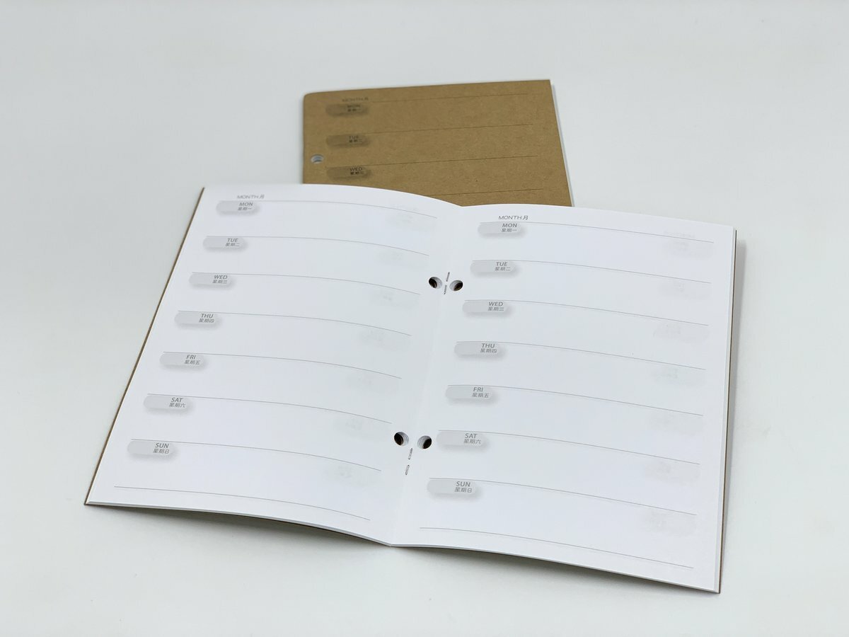 - 裝訂:平裝騎馬釘釘裝(可完全平攤書寫)