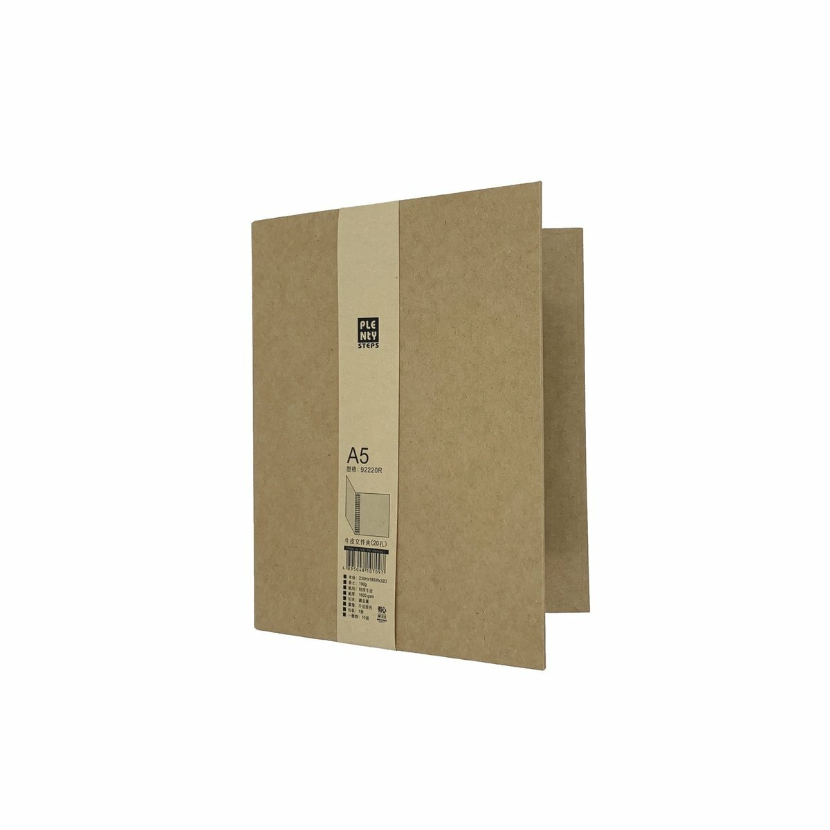 A5 專用;20 孔活動鐵夾,快勞尺寸: 230mm X 190mm X 35mm;牛皮紙製品。