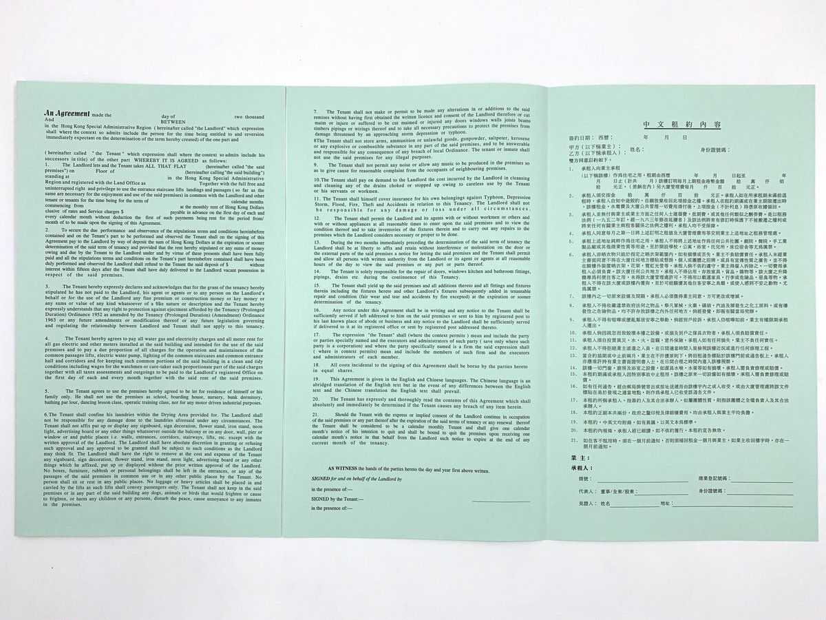 - 內容:6張中英文對照租約 + 6個獨立透明保護套