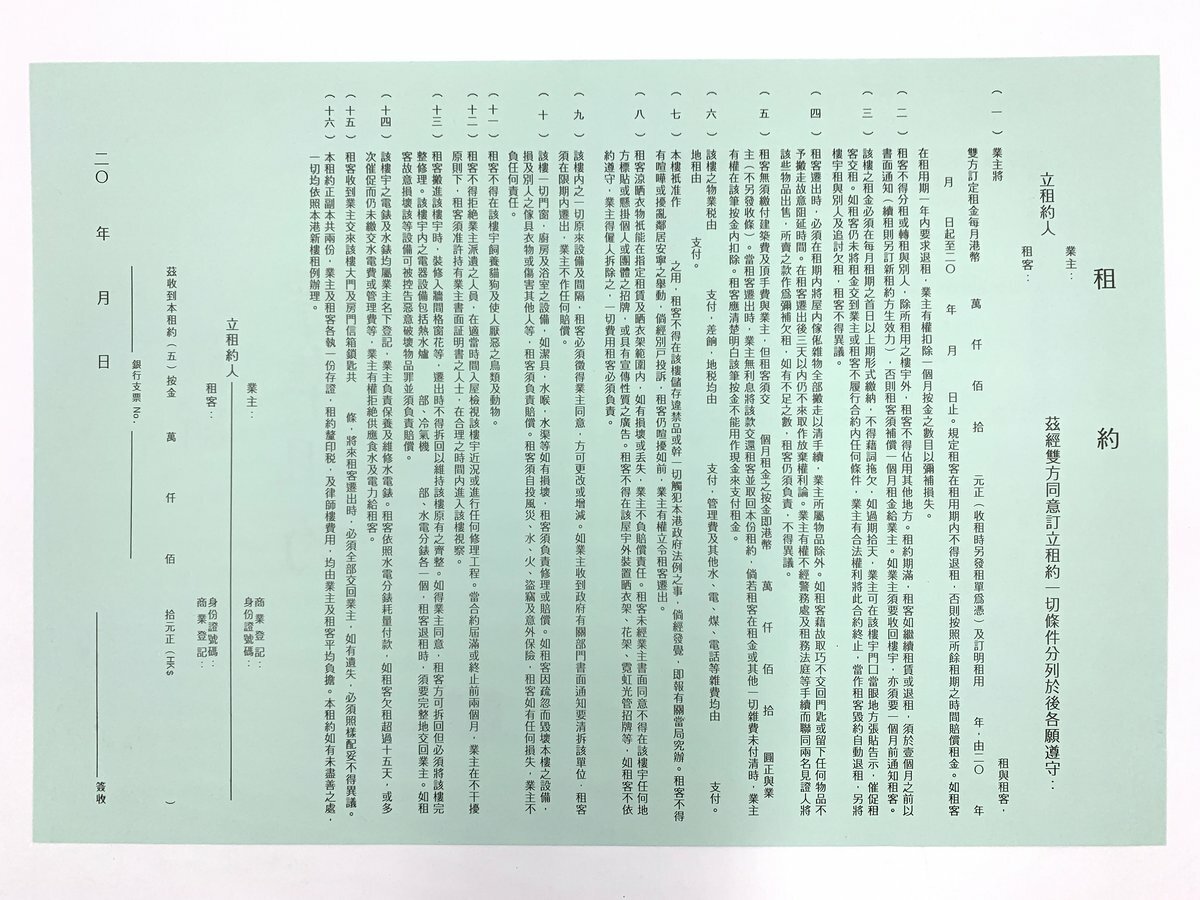 內容:6張獨立租約表格 + 6個獨立透明保護套