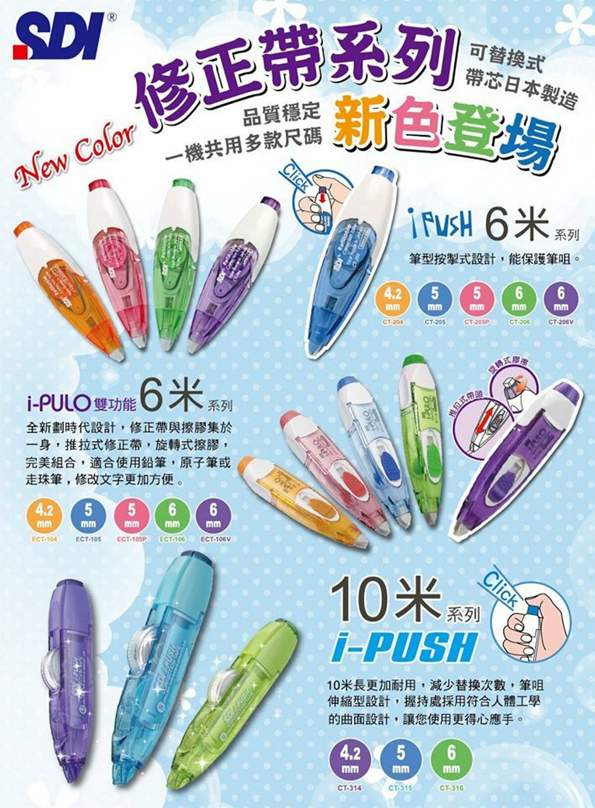 *送 CT-316 "iPUSH"輕按式塗改帶 (6mm x 5M推廣裝) 綠色 - 1 部