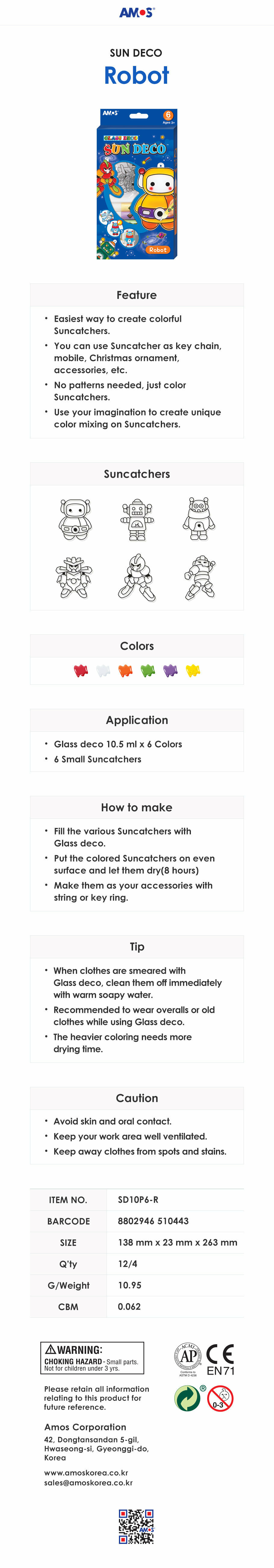 AMOS - 韓國 AMOS 繪畫玻璃彩連掛飾膠牌, 機械人 10.5毫升 x 6色(小盒裝) #SD10P6-R《香港行貨》- 1 套