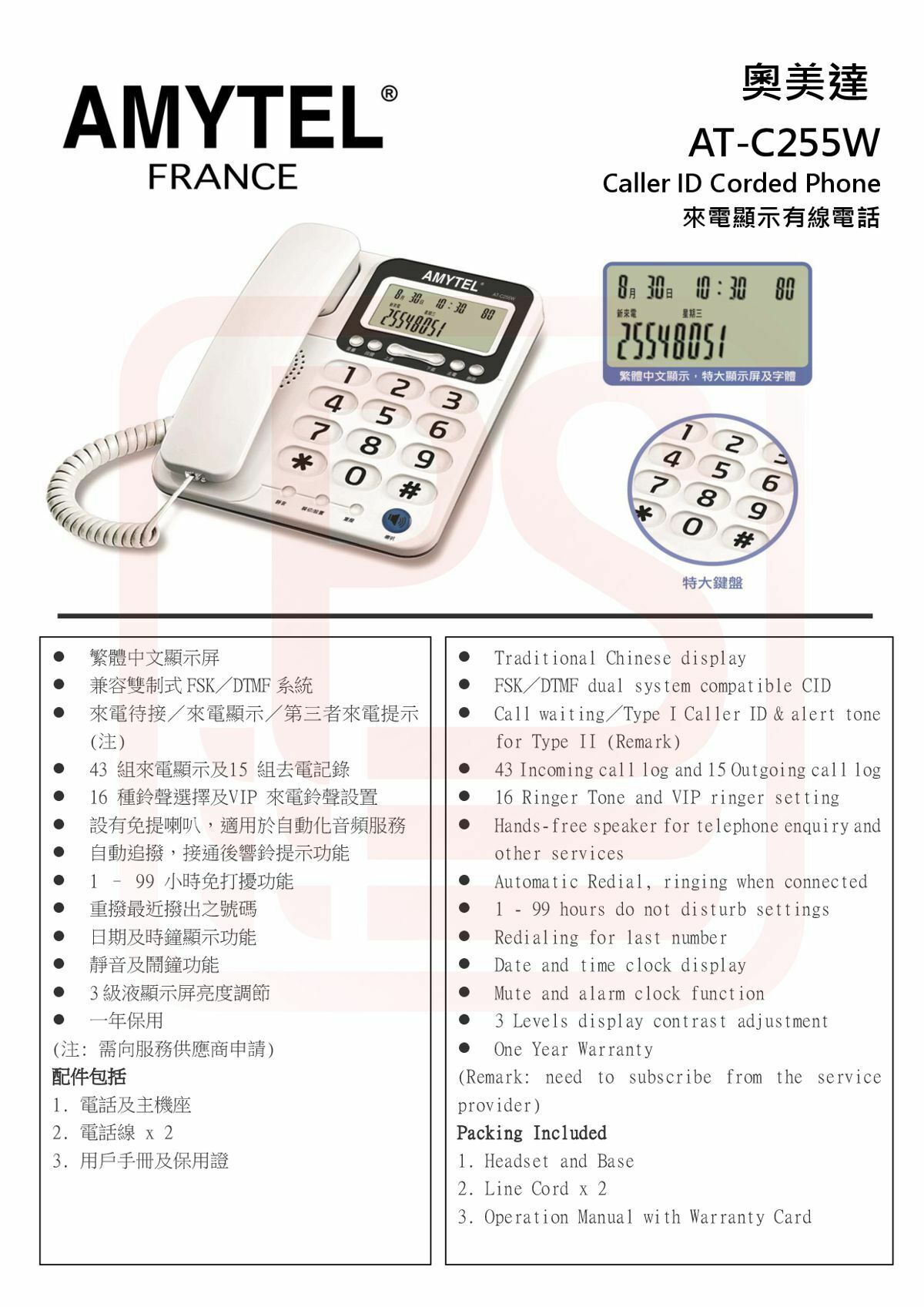 AMYTEL - AMYTEL® AT-C255W 室內電話《香港行貨》《1年保養》- 1部